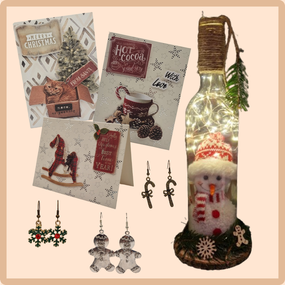 Breng extra sfeer in huis met onze unieke kerstartikelen! Ontdek onze sfeervolle kerstflessen met lampjes, handgemaakte kerstkaarten en feestelijke kerstoorbellen. Stuk voor stuk originele items om de feestdagen nog specialer te maken. Bekijk ons volledige aanbod en laat je inspireren!